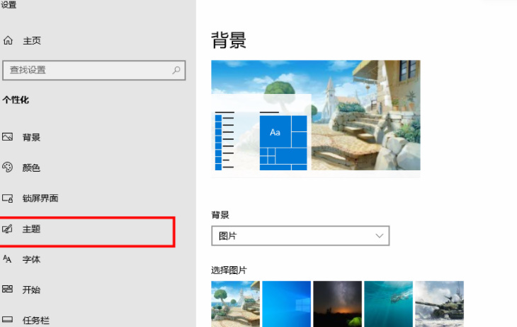 2、打开个性化设置界面之后,点击左侧栏的“主题”;