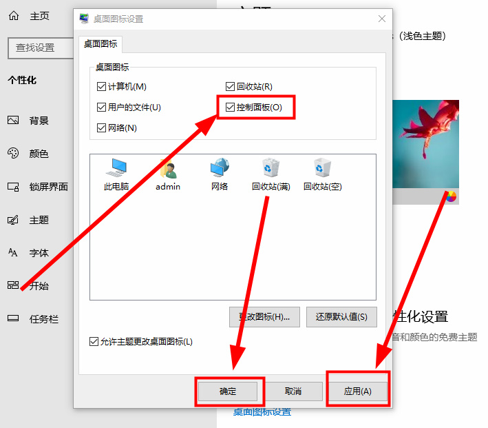 4.第四步,最后我们看到【控制面板】四个字了,我们把它勾选起来,然后点击页面右下角的【应用】和【确定】就可以了。