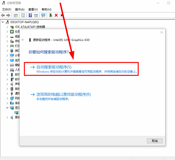 3.第三步,然后点击第一个【自动搜索驱动程序】,在等待一会。
