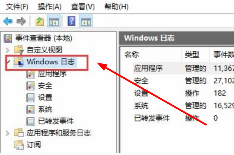 3.第三步,我们看到页面的左侧,就能看到电脑的【windows日志】了。