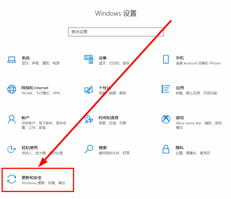 2.第二步,然后点击页面下方的【更新与安全】设置。