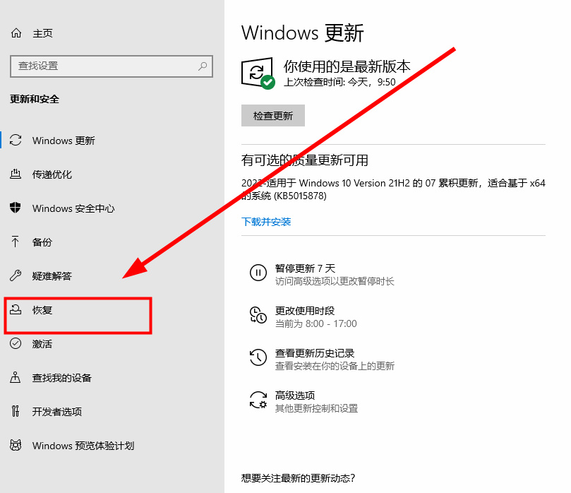 3.第三步,进入后我们点击页面左侧的【恢复】按钮。