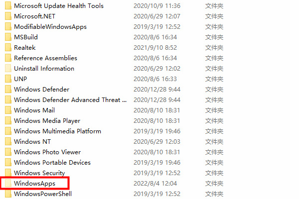 3、打开文件夹,找到“windowsAPPs”文件夹,点击打开;