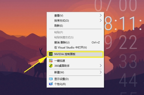 1.第一步,来到桌面右击空白处,点击下拉列表的【NVIDIA控制面板】进入。