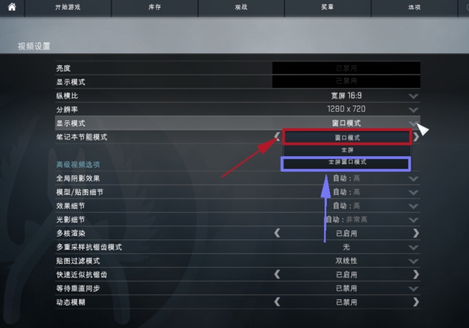 2.第二步,我们进入后将下面的【显示模式】修改为【窗口模式】或【窗口全屏模式】。