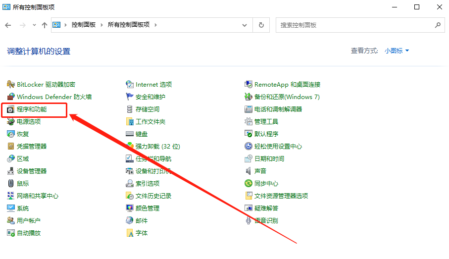 1.第一步,首先进入【控制面板】,我们看向页面左上角的【查看方式】,需要改为【小图标】,如果是就不用改。