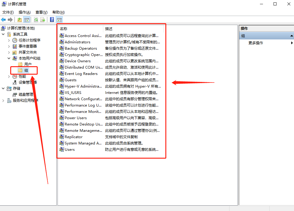 4.第四步,按照顺序点击页面左侧的【本地用户和组用户】,然后看向页面右边的【guest】是否还在,在的话就可以。