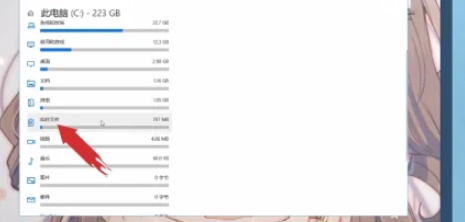 3.第三步,这个时候会有好多个软件的储存情况,我们选择【临时文件】按钮,之后我们就等待就好了。