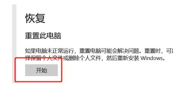 4、然后在打开的页面中选择右侧的恢复中的【开始】功能进行点击。