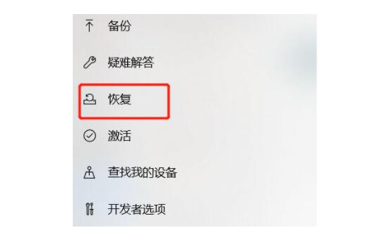 3、在左边的栏目中选项恢复进行点击打开。