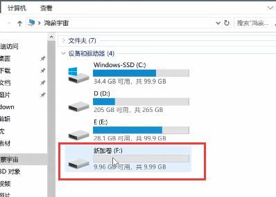 8、然后重新打开此电脑,你可以看到重新创建的分区资源了。