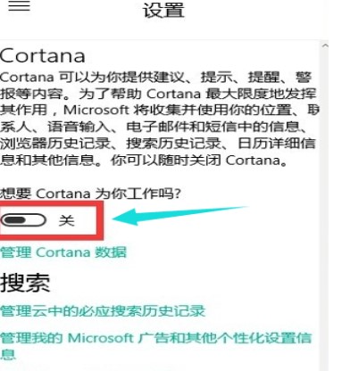 3、然后在语言设置选项中,用户可以在如图所示的位置选择打开小娜。
