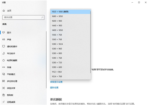 3、在页面中点击选择右边的分辨率选项,选择适合的分辨率,一般选择含有“推荐”的选项;