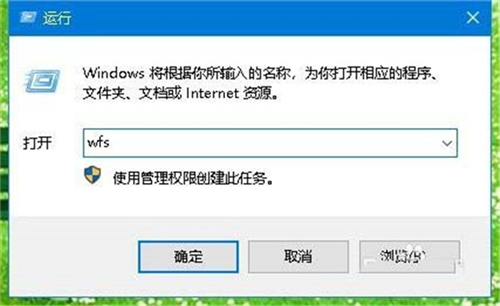 2、在弹出的运行菜单中输入指令wfs,点击确定;