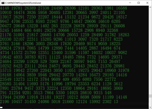 echo %random% %random% %random% %random% %random% %random% %random% %random% %random% %random%