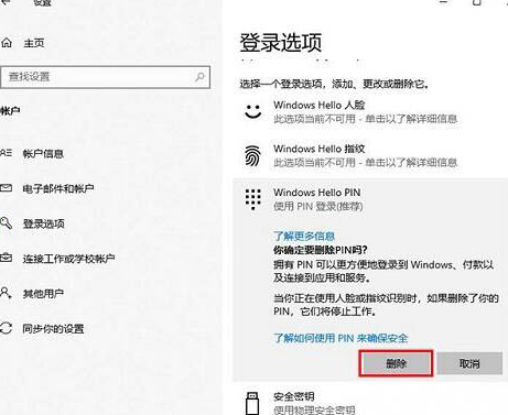 1、首先利用快捷键【Win+I】打开设置,选择账户,点击登录选项,如果需要修改PIN码,就点击更改按钮即可,输入目前的PIN码和新的PIN码即可。如果删除PIN码,就点击删除按钮。