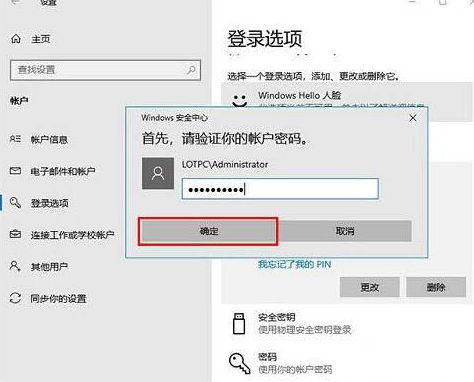 3、这时候会让你验证你的账户密码,就可以删除pin码了。