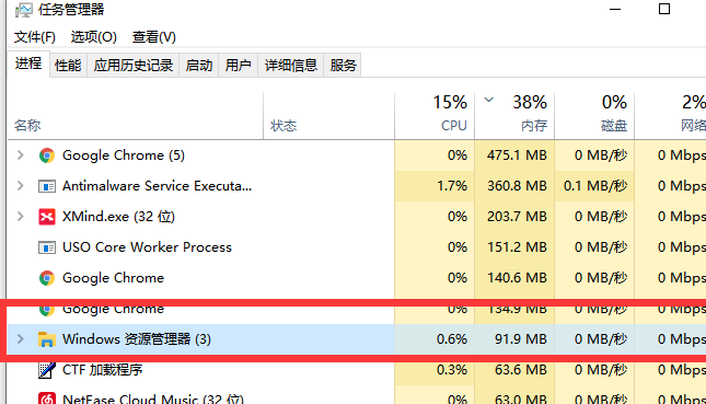2、然后最上方选择【进程】栏目,然后找到其中的【Windows资源管理器】。
