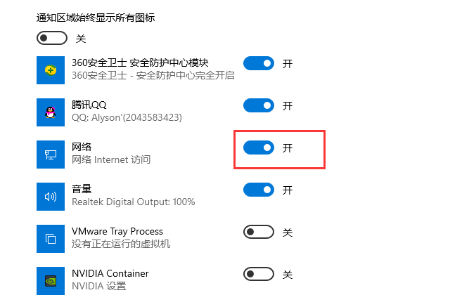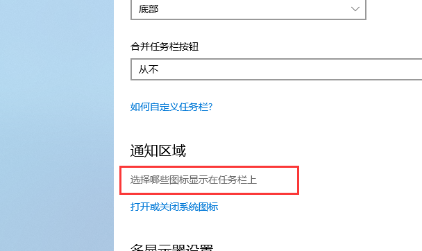 2、打开后选择右侧通知区域下方的选择哪些图标显示在任务栏上选项。