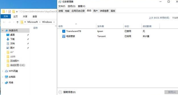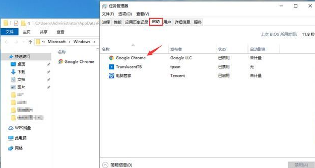 3、打开任务管理器,选择“启动”选项卡,可以看到我们刚刚添加的启动项。