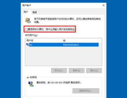 3、第三步,在Win10用户账户窗口中,将【要使用本计算机,用户必须输入用户名和密码】前面的勾去掉,然后确定保存。