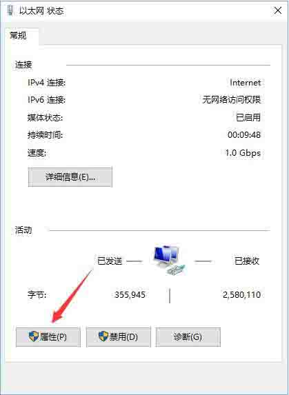 6、此时会弹出状态界面,点击下面的属性按钮;如图所示: