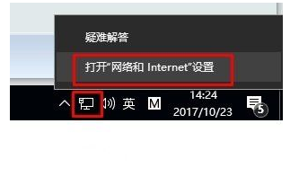 1、首先点击右下角任务栏中的网络图标,然后打开【网络和Internet设置】。