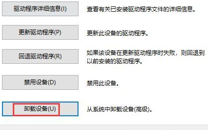 3,在这里先点击“卸载设备”,吧设备卸载掉。