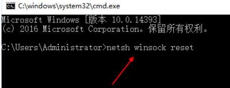 2、在打开的电脑命令界面输入【netsh winsock reset】,然后点击键盘上的回车键。