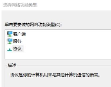 6、然后在出现的网络功能中选择协议,进行添加,操作完成后保存设置即可。