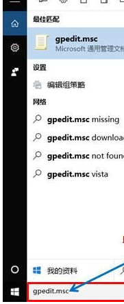 1、点击开始菜单中的搜索栏,然后输入【gpedit.msc】,敲击回车。