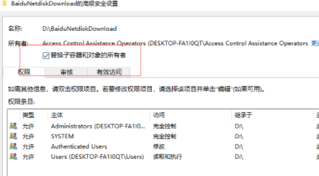 4、重新回到高级安全设置,勾选所有者下面的替换子容器和对象的所有者,然后点击确定。