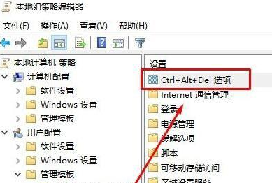 3、然后在【Ctrl+Alt+Del选项】窗口中双击右键打开【删除"任务管理器"】