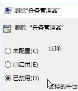 4、然后在【删除“任务管理器”】界面点击【已禁用】或【未配置】,最后点击确定对于设置进行保存。