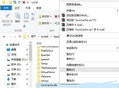 2、这时候你可以看到一个【IconCache.db】文件,直接对于这个文件进行删除,然后对于电脑进行重新启动操作。