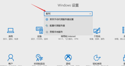 2、在打开的设置窗口中的搜索栏中输入“服务”,敲击回车进行搜索。