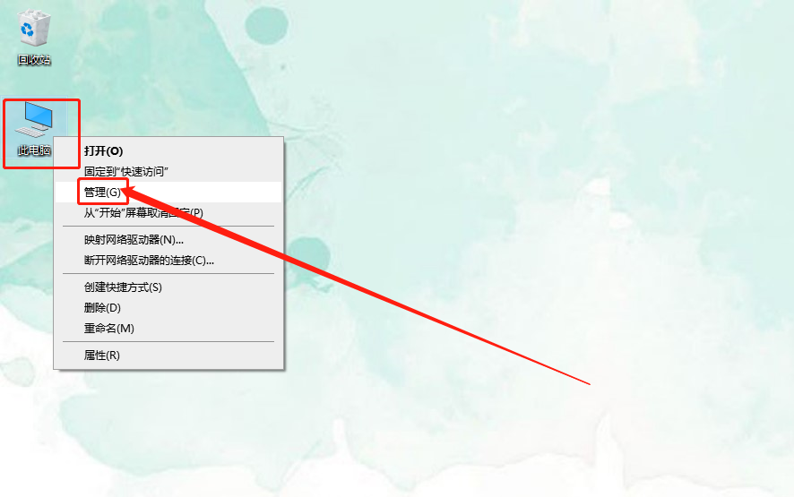 1、首先我们在电脑桌面上找到【此电脑】图标,然后进行右键点击,在这里选择管理选项进行点击。