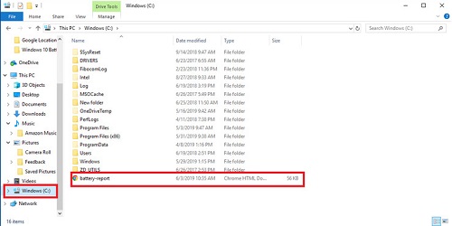 2、打开Windows文件资源管理器并访问Windows(C :)驱动器。 在这里我们需要找到保存为HTML文件的电池报告,然后对于这份文件进行打开。