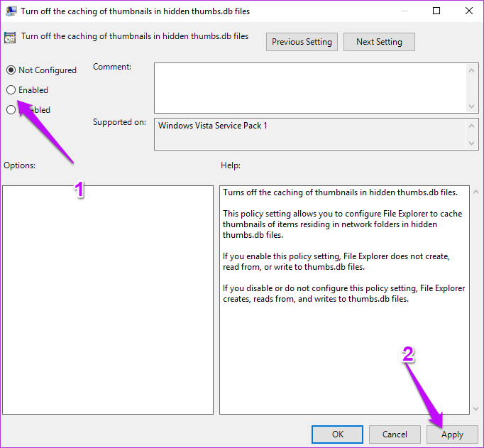 第3步:然后在文件资源管理器中搜索“关闭缩略图缓存...”选项,这时候应该是未配置状态或已禁用的状态。