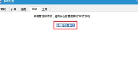 3、然后选择启动选项栏目,选择打开任务管理器选项。