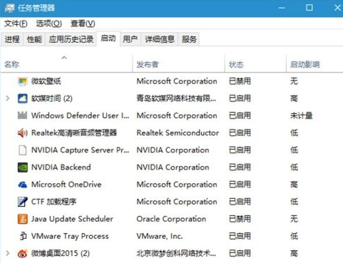 4、然后在任务管理器中点击“启动”选项栏目,将所有的第三方启动项全部禁用。