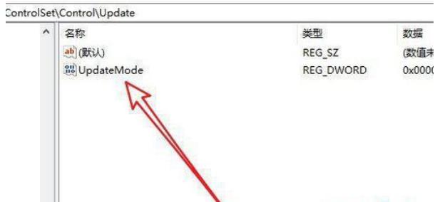 4、然后在右侧打开的页面,选择updatemode的注册表键值。