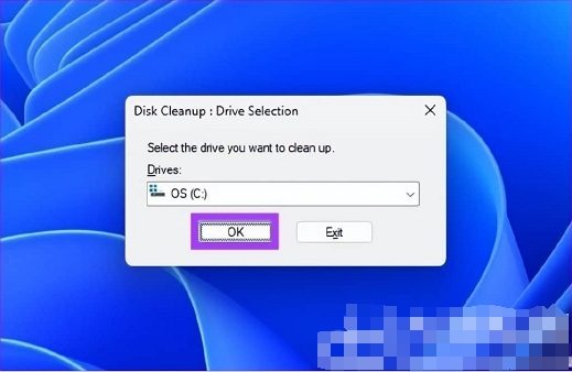 2、在提示要选择清理的驱动中选择安装windows操作系统C盘驱动器,单击确定。