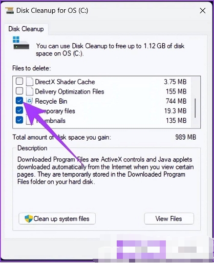 3、单击清理系统文件,选择必要的文件夹,然后确定。