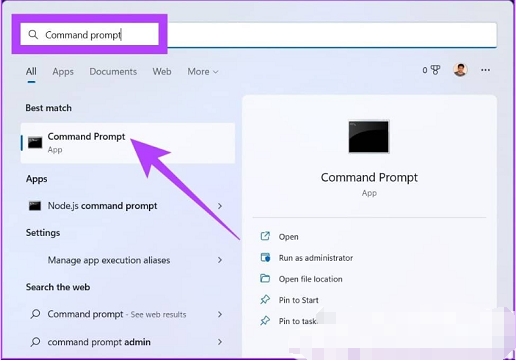 1、按windows键,键入命令提示符,然后单击以管理员身份运行。