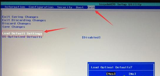 3、选择Load Default Settings回车加载设置,加载默认设置之后,部分机型需要先按F10保存重启再按F2进入BIOS继续下面的设置。