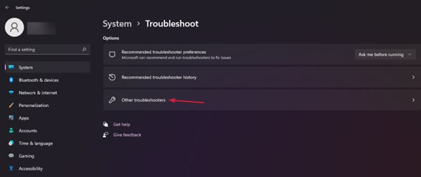 从左侧窗格转到系统,然后从右侧选择疑难解答。
