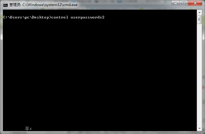 2、点击打开命令窗口,输入以下命令行:control userpasswords2,敲回车即可打开Windows 7系统的用户帐户管理窗口。