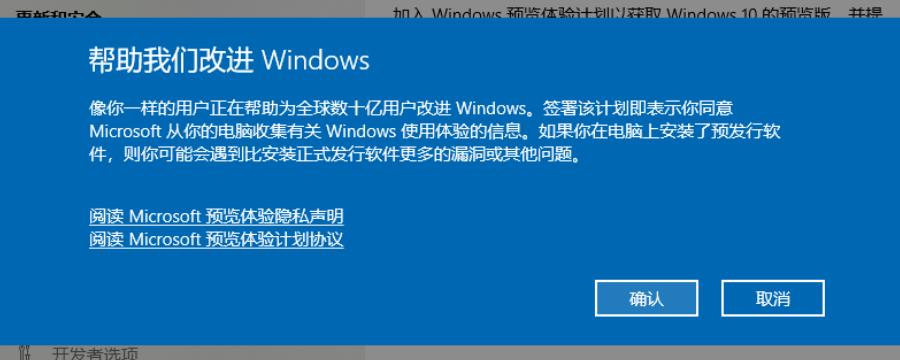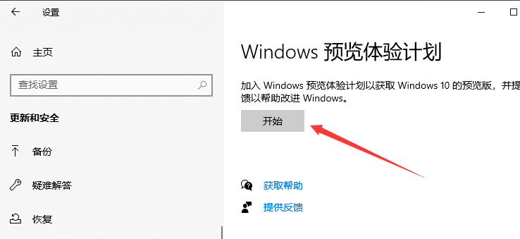 4.点击开始按钮获取预览体验版本。提示:并不是所有版本都可以升级windows预览体验计划,也不是任何时间都一定可以!