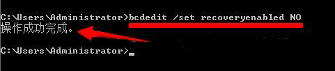 3、在命令提示符窗口中输入“bcdedit /set recoveryenabled NO”,然后单击键盘回车,就可以关闭操作系统开机自动修复功能